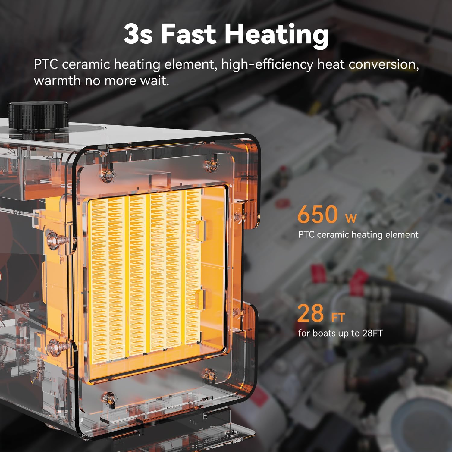 The boat engine compartment heater keeps the bilges warm and dry, whether you patrol the waters or just like taking your boat out on colder days, you’ll always be good to go with an engine compartment heater on board.